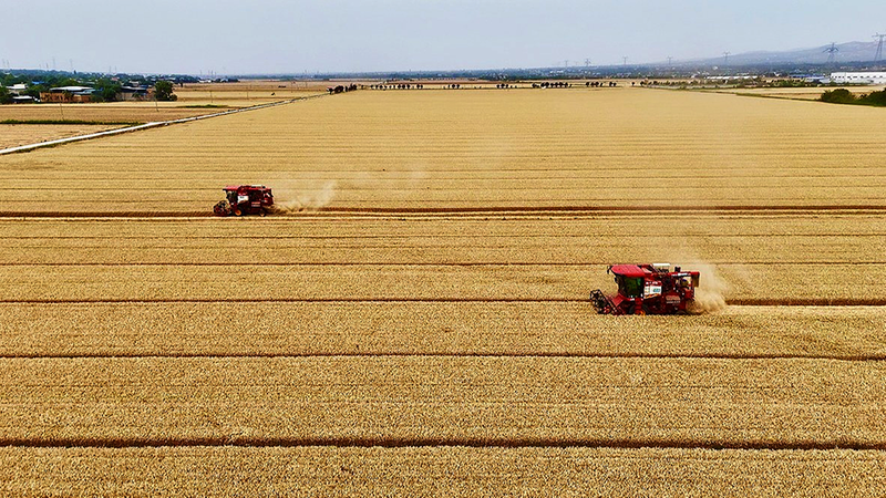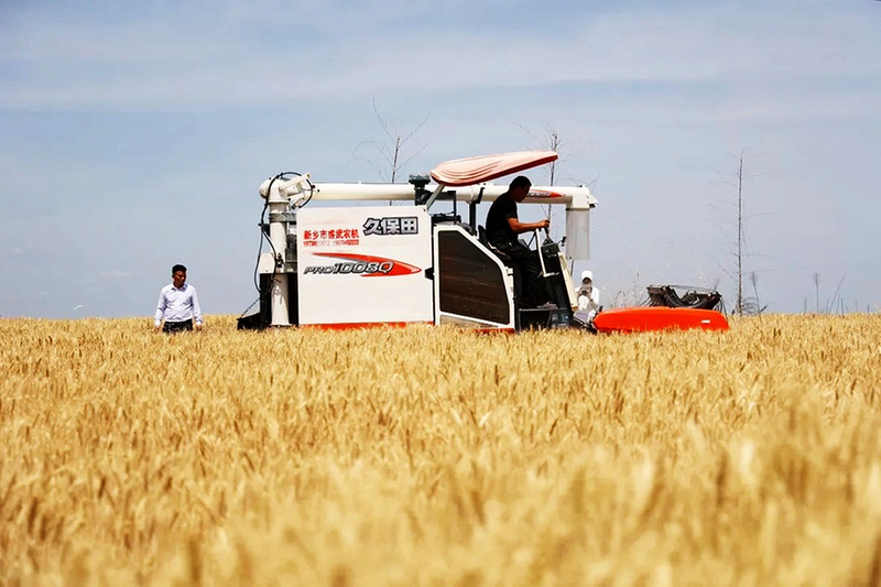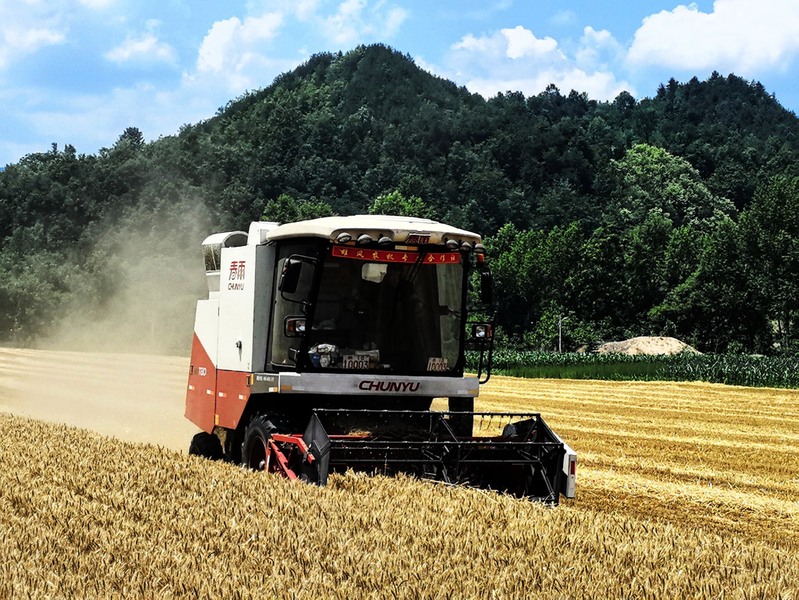 小麦收割机高效完成收割、脱粒等工序。