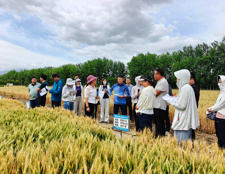 西安市农技中心举办小麦绿色高产高效示范区现场 观摩与技术培训会。图为观摩会现场。