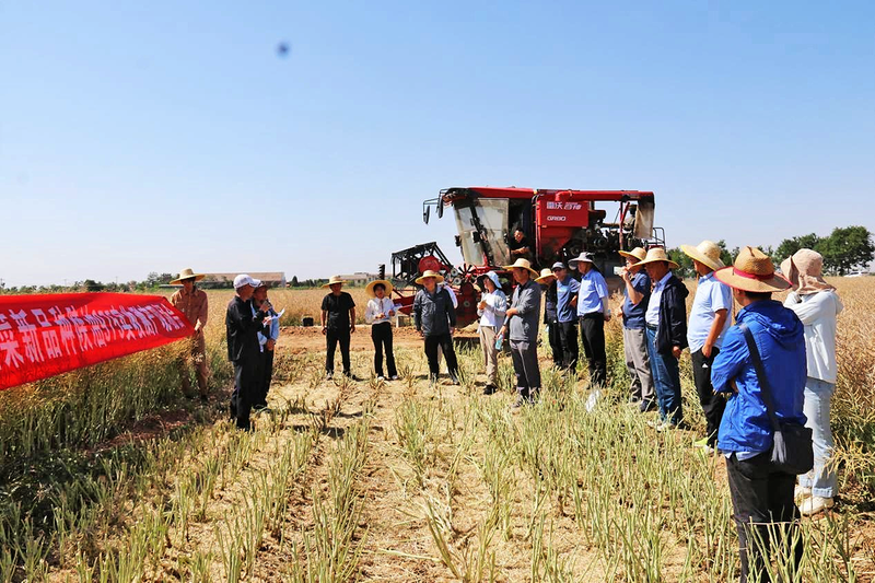 超高产高油油菜新品种“陕油975”实收测产现场会。 本报渭南讯(农业科技报・中国农科新闻网记者 闫瑜涛)6月5日上午,陕西省蒲城县荆姚镇常家村的盐碱地上,收割机轰鸣驶过金黄油菜田,扬起丰收的碎粒。这片曾因盐碱含量过高被称作“大地之殇”的土地,迎来油菜的一次性联合机收实收测产。在油菜产量提升关键技术集成与示范项目观摩会上,专家组现场实测油菜示范田,平均亩产达258.9公斤,标志着我国耐盐碱油菜品种选育与栽培技术取得重大突破。