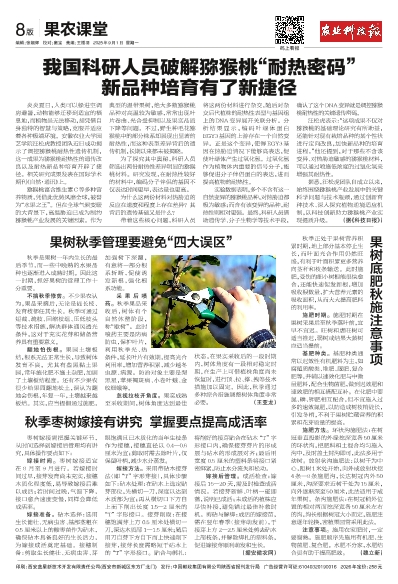 秋季是果树一年内生长的最后季节,而一些中晚熟的水果品种也逐渐进入成熟时期。因此这一时期,抓好果树的管理工作十分重要。