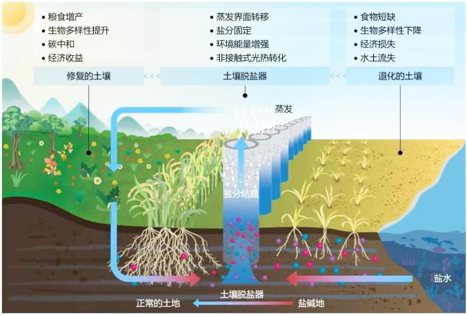 利用咸水作为“工作介质”抽取土壤盐分示意图。 一根吸管就能治理好盐碱地?