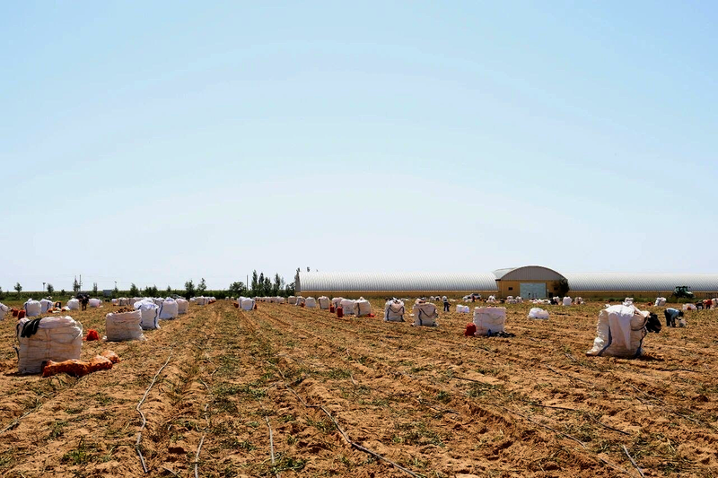 “今年我们在麻生圐圙村种植了8600亩马铃薯,其中2600亩是专用炸薯条的麦肯品种,剩余的6000亩V7品种是菜用薯。麦肯品种马铃薯每亩产量约3.5吨,V7品种马铃薯每亩产量约1.2万斤。我们在麻生圐圙村流转了近1.3万亩土地,通过支付地租、提供劳务用工等方式,增加当地群众的经济收入。”榆林市明杰农业开发有限公司项目经理杨广才介绍。