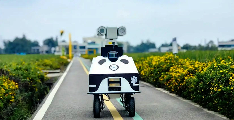 头顶一对大眼睛,身穿一套熊猫装,近段时间以来,在成都新都现代粮油产业园内,一只形似国宝大熊猫的机器人以一米每秒的速度在农田里行走,不时停下来“东瞧瞧”“西看看”,似乎在检查田里的水稻。