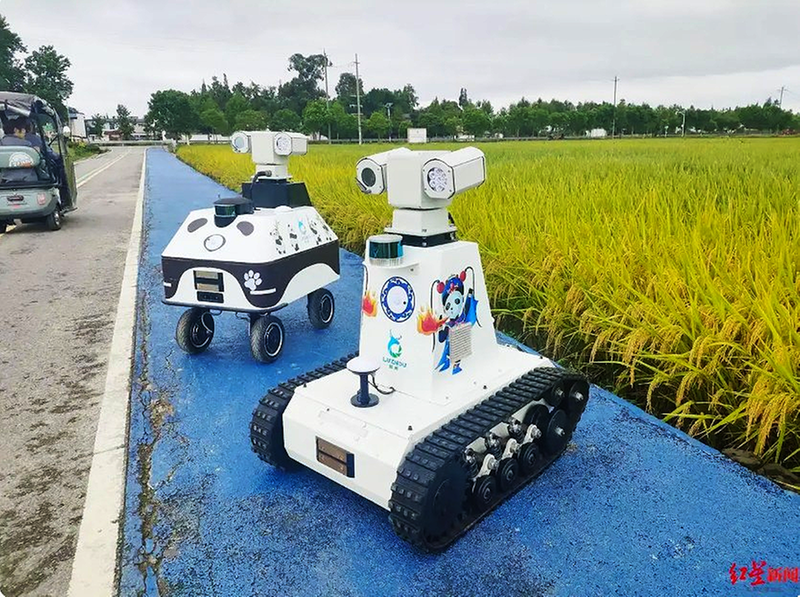 履带式熊猫机器人 “一只‘熊猫’管理1000亩农田,平均每小时能采集30亩农田的数据,生成对应的作物生长报告以便于辅助农户采取相应农事措施。”9月22日,成都新都区现代粮油产业园内,新都绿控农业服务有限公司相关负责人赖金洋指着一个形似大熊猫的机器人告诉记者,“它搭配的黑光相机还能在夜间‘看’到作物的生长情况,判断作物是否发生病虫害。”