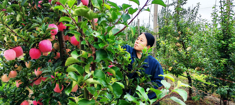 同日,雨过天晴的范家寨镇雨嘉果业专业合作社苹果园里,红彤彤的苹果挂满枝头,农户正忙着采收苹果,共庆丰收。