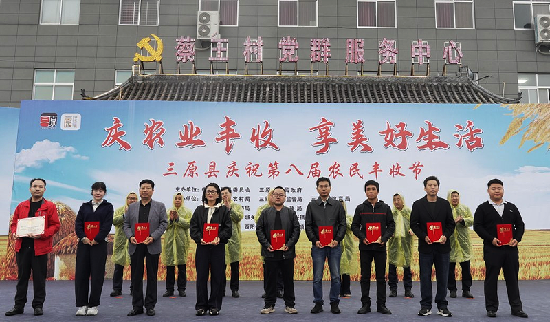 秋分时节,陕西省三原县陂西镇蔡王村党群服务中心广场人头攒动。9月23日上午9时,以“庆农业丰收享美好生活”为主题的三原县2025年中国农民丰收节庆祝活动在此启幕,全县141个村党支部书记、受表彰先进代表及农业农村系统干部职工齐聚,共庆丰收。