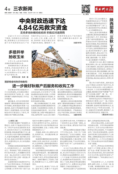 国家粮食和物资储备局10月8日印发通知,对有效应对部分地区连阴雨天气影响、进一步做好秋粮产后服务和收购工作作出安排部署。