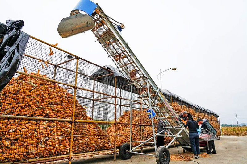 10月11日,山东省沂南县张庄镇农民储存收获的玉米。