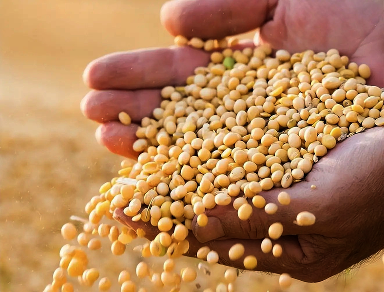 大豆籽粒收获脱粒后,需立即进行初步清选,去除尘土、秸秆、残叶等易吸水导致籽粒霉变的杂质;脱粒后尚未完全干燥的籽粒不可堆放,应尽量摊薄以保持通风,可在室内使用大功率电扇吹风烘干,防止籽粒因堆积而霉变。若具备条件,可使用专用烘干设备进行烘干,烘干时需遵循“低温慢速、分段烘干”的原则:先使用50℃—55℃的热风将大豆水分降至16%,静置4—6小时后,再使用50℃的热风将水分从16%降至13%;烘干完成后,应先对大豆进行冷却处理,将大豆温度降至与环境温度相差5℃—8℃之间,之后再装袋存放。