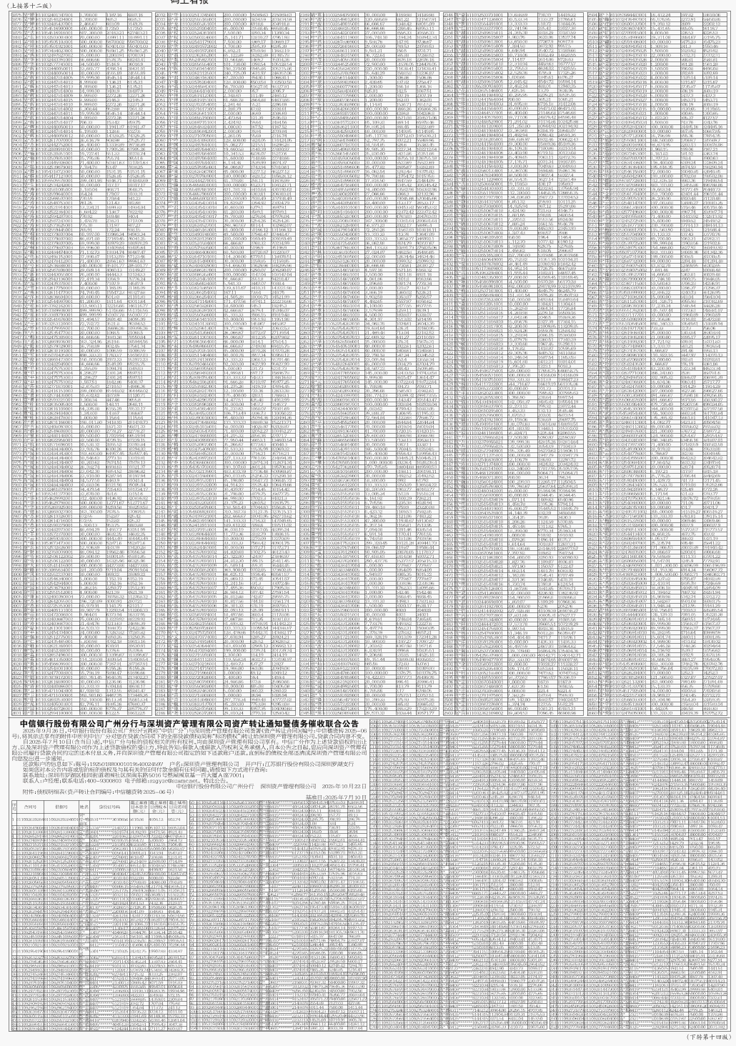 中信银行股份有限公司广州分行与深圳资产管理有限公司资产转让通知暨债务催收联合公告