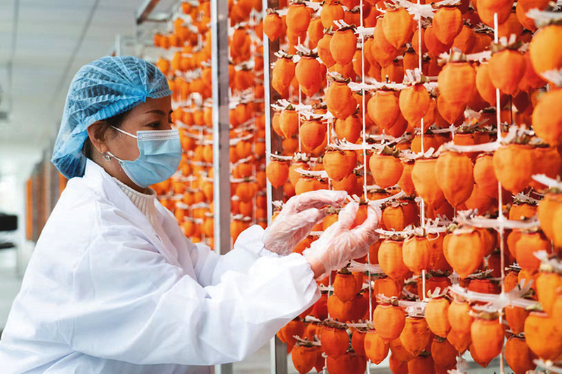 产业链延伸提升附加值。除了传统柿饼,富平研发推出冰柿、柿子酒、柿叶茶、柿子酵素等20余种深加工产品。