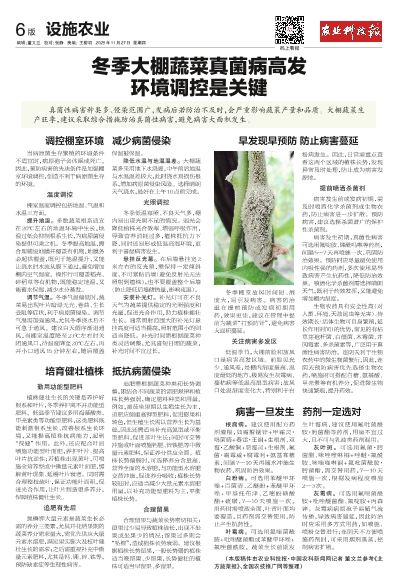 冬季大棚蔬菜真菌病高发环境调控是关键