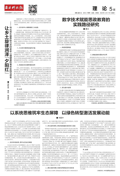 党的二十届四中全会明确提出,要“筑牢生态安全屏障,增强绿色发展动能”,将生态安全与绿色发展纳入国家治理体系。深入学习贯彻全会精神,要用系统思维把握生态保护与绿色发展的辩证关系,让生态安全成为发展的“压舱石”,让绿色动能成为转型的“发动机”。从“双碳”目标的纵深推进到新型能源体系的加快构建,从产业绿色升级到全民低碳生活的普及,生态安全与绿色发展已成为中国式现代化的重要命题。当前,我国正处于发展模式转型的攻坚期,唯有将生态保护的底线思维与绿色发展的前瞻眼光相结合,才能破解发展与保护的二元悖论,为国家安全夯实生态根基,为高质量发展注入绿色活力。