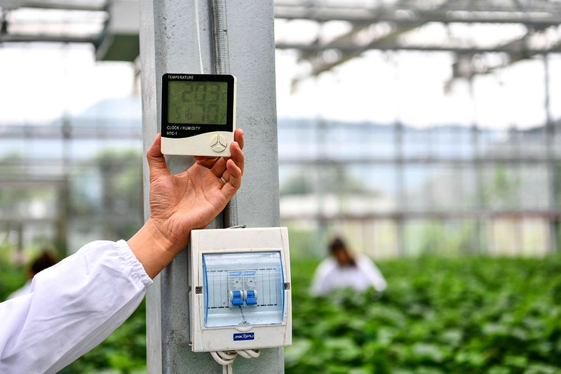 人工补光,提高薄膜透光率。设施园区可采用LED补光灯、白炽灯、高压钠灯等进行补光,补光强度推荐不低于100微摩尔/平方米・秒或5000lx,寡照天气每天补光4—8小时;同时清洁棚膜增强透光效果,在不显著影响棚内温度前提下,适当早揭晚盖保温覆盖物,延长光照时长。