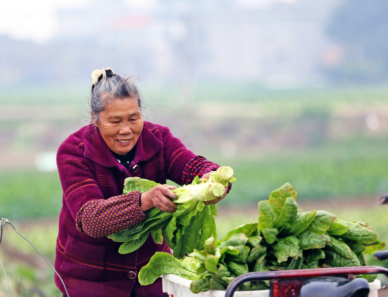 图为1月11日,在区水口镇周桥镇坝村蔬菜种植基地,村民采收莴笋供应市场。