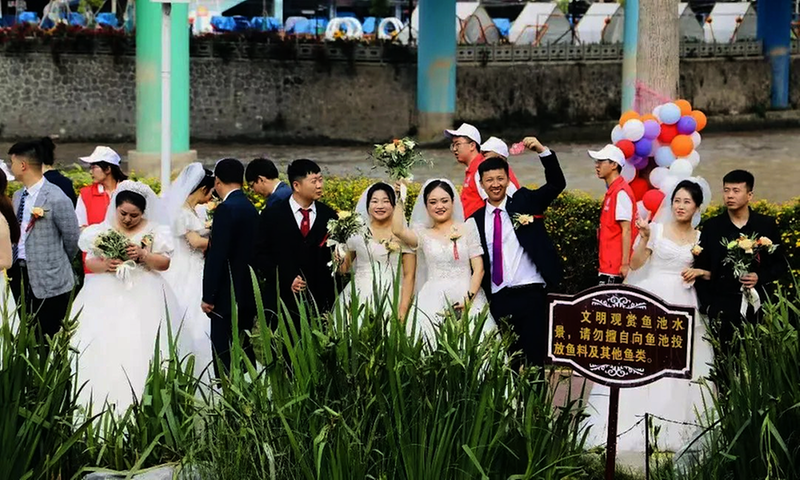 “零彩礼”新娘王蕾、折瑞雪和爱人一起参加陇南市集体婚礼。资料图片 一部乡土微短剧,既能成为移风易俗的文化载体,也能化作带动发展的产业引擎。陇原乡村的《这婚怎么结?》,以村民自演自导的质朴形式,让低彩礼新风浸润人心,彰显了微短剧扎根乡土、凝聚共识的独特力量。