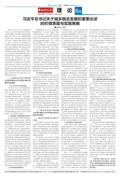 习近平总书记关于城乡融合发展的重要论述 的价值意蕴与实践策略