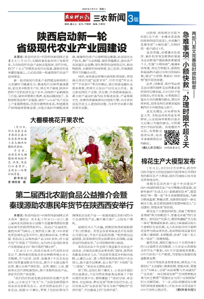 本报讯(农业科技报·中国农科新闻网记者 王朝阳 通讯员 刘正龙)1月26日—28日,第二届西北农副食品公益推介会暨秦璞源助农惠民年货节在陕西西安举行。活动以“公益助农、惠民兴商”为核心,汇聚西北五省(区)300余家优质县域企业及合作社,展出粮油米面、生鲜果蔬、特色加工品等农副产品1000多种,在丰富市民“年货篮子”的同时,也为西北县域优质农产品搭建起走向广阔市场的“暖心桥”。