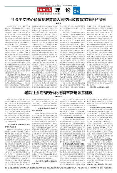 社会主义核心价值观是我国长期实践探索中凝聚形成的精神瑰宝,是全体公民的价值遵循,在引导学生认识世界、把握自我、辨析问题、参与社会实践中具有重要作用。高校应依托思政教育这一主渠道主阵地,在数字技术赋能下,推动核心价值观深度融入思政理论课堂、实践育人环节,健全融入机制,实现全方位、全过程协同育人,着力培养担当民族复兴大任的时代新人。